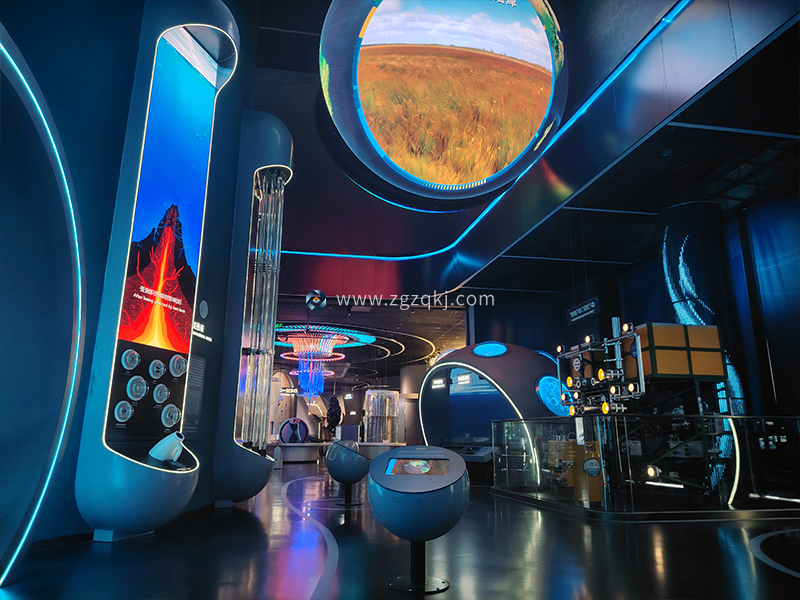 上述實例體現(xiàn)了主題色調(diào)從單一裝飾功能向?科技敘事媒介?的進(jìn)化,通過材料科學(xué)創(chuàng)新與人性化設(shè)計,構(gòu)建兼具科學(xué)嚴(yán)謹(jǐn)性與藝術(shù)感染力的空間體驗。最新數(shù)據(jù)顯示,采用智能變色技術(shù)的展項可使觀眾停留時間提升35%。